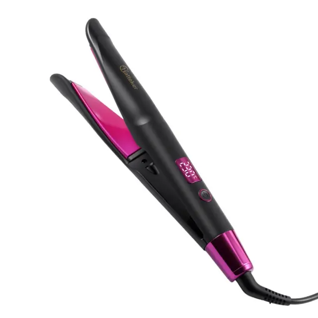 Varna in priročna zasnova: Ta ravnalnik in kodralnik las, zasnovan z varnostjo in udobjem v mislih, ima 60-minutno funkcijo samodejnega izklopa, ki zagotavlja brezskrbnost, če ga pozabite izklopiti. Univerzalna združljivost z dvojno napetostjo (220 V, 50/60 Hz) je popolna za potovanja, kar vam omogoča, da ohranite svoj slog, kamor koli greste. 65-stopinjska zasnova z zasukom zagotavlja udobno rokovanje in enostavno oblikovanje. Keramična prevleka na grelnih ploščah zmanjšuje trenje in zmanjšuje tveganje za lomljenje las. Uživajte v varni in priročni izkušnji oblikovanja s tem premišljeno zasnovanim orodjem za lase.
