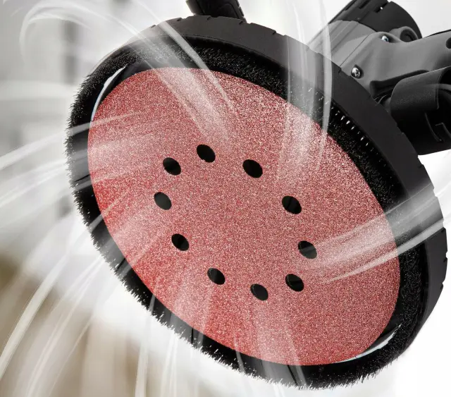 225 mm Brusna Glava: Velika brusna površina omogoča enakomerno obdelavo večjih delov stene, kar pospeši delo.