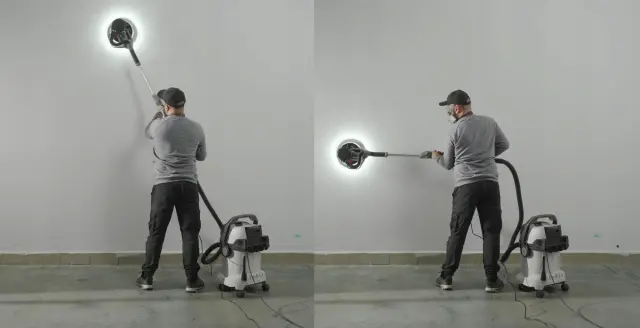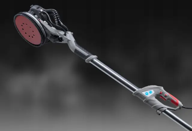 Teleskopski Ročaj: Prilagodljiv ročaj omogoča brušenje stropov in visokih sten brez potrebe po uporabi lestev, kar izboljšuje varnost in udobje med delom.