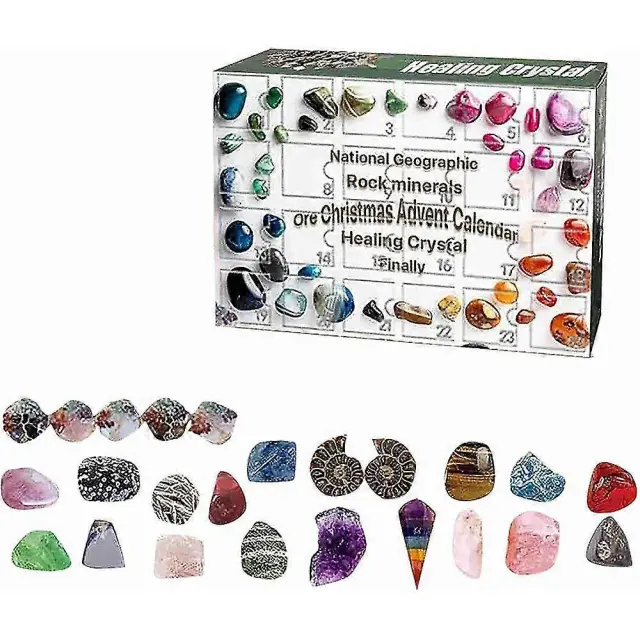 2022 Božič 24-dnevni odštevalnik Adventni koledarji Otroško božično darilo - Zdravilni kristal Naravni kamni Skale Presenečenje Slepa škatla