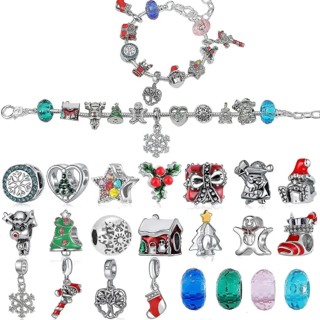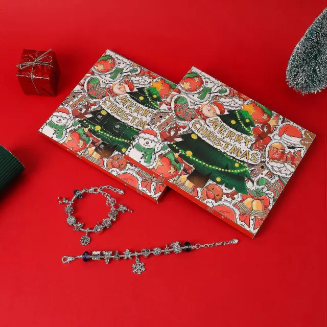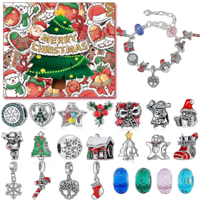 2022 Božič 24-dnevni odštevalnik Adventni koledar DIY Charm Zapestnice Obesek Presenečenje Slepa Škatla Darilni Set za Deklico Kid