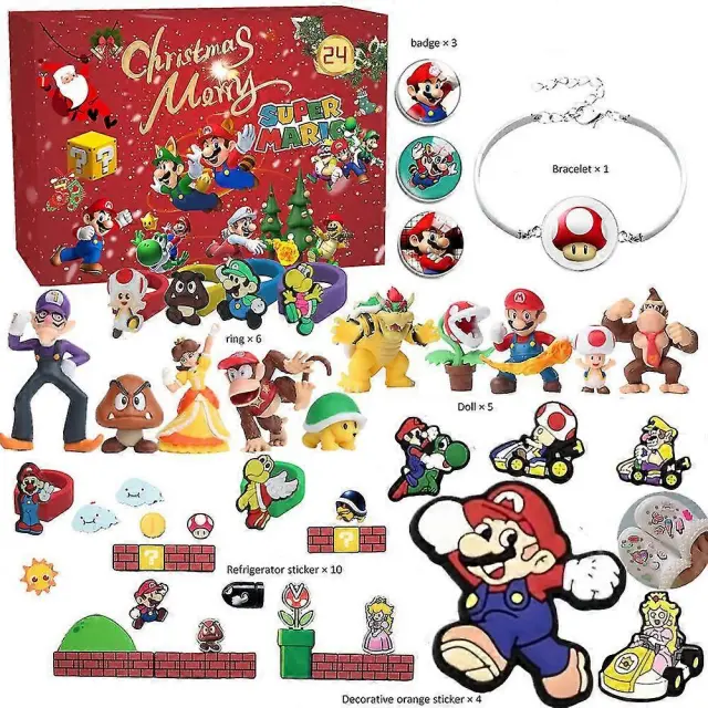 2023 Božič Super Mario Adventni koledar Risani liki Kawaii Figurice Igrače 24 Days Xmas Countdown Presenečenje Blind Box Otroško darilo