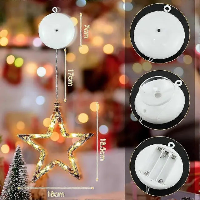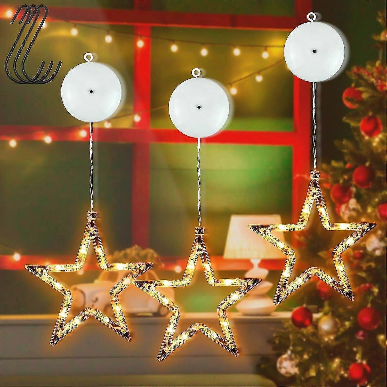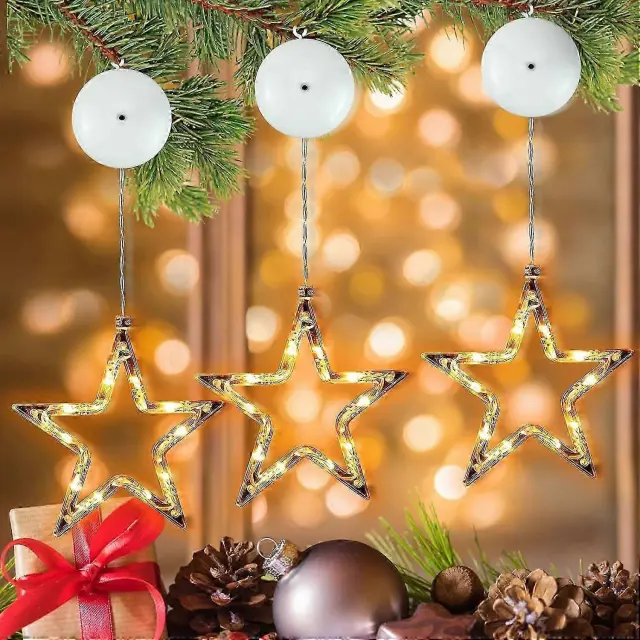 2024, paket 3 božičnih okraskov z LED-zvezdami 10 LED božičnih lučk okenske zvezde tople bele okenske dekoracije pravljične luči časovnik bate