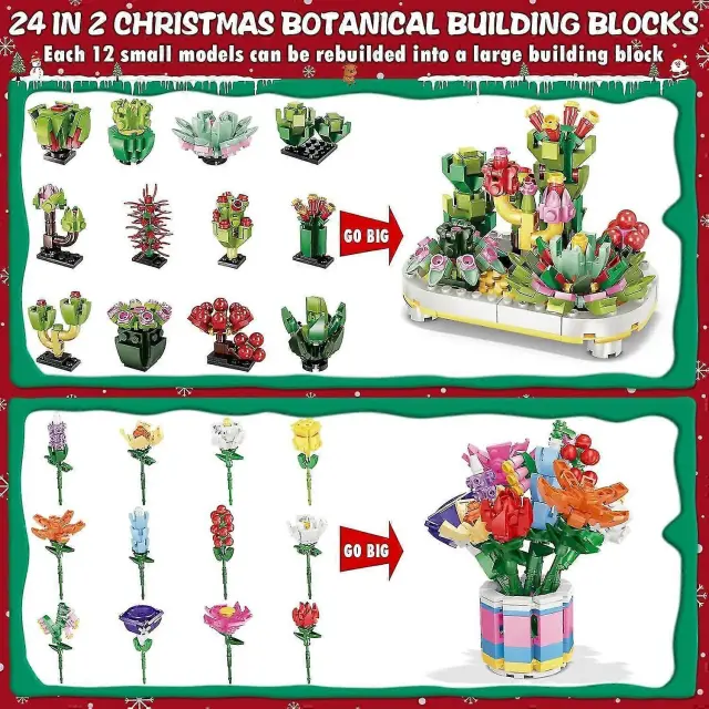 2024 Sukulentne rože gradniki Božični adventni koledar Božič 24-dnevni odštevalnik Opeke Komplet igrač Koledar