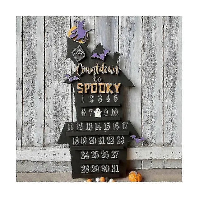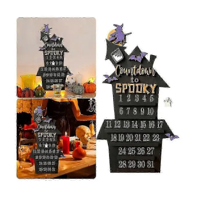 2025 DIY premikajoči se koledar iz lesenih blokov za dekoracijo doma za noč čarovnic s čarovnicami, kot nalašč za stensko razstavo