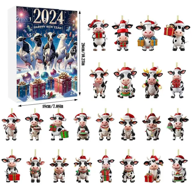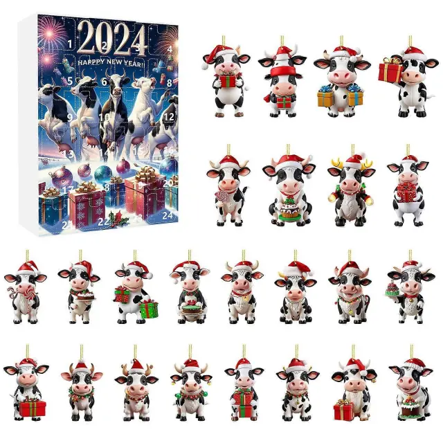 2025, nov adventni odštevalnik, 24-dnevni božični adventni koledar, prisrčna krava, božični okraski, obesek, figure in dodatki božične krave