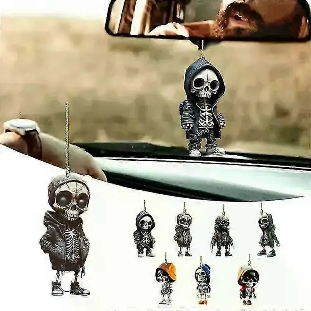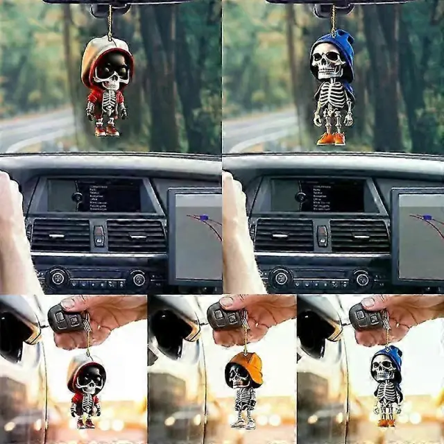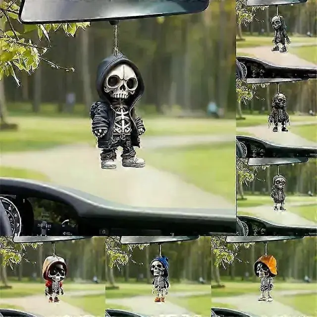 2025 Skeleton Swing Avto Ornament Akril Spooky Skeleton Swing Obesek Rearview Decor Viseči Okrasni Okostnjaki Noč Čarovnic Avto