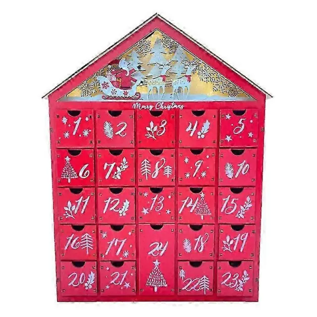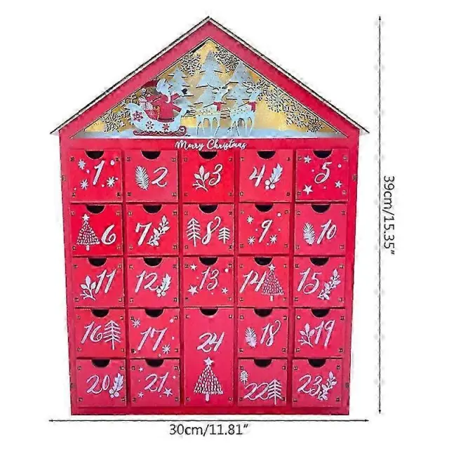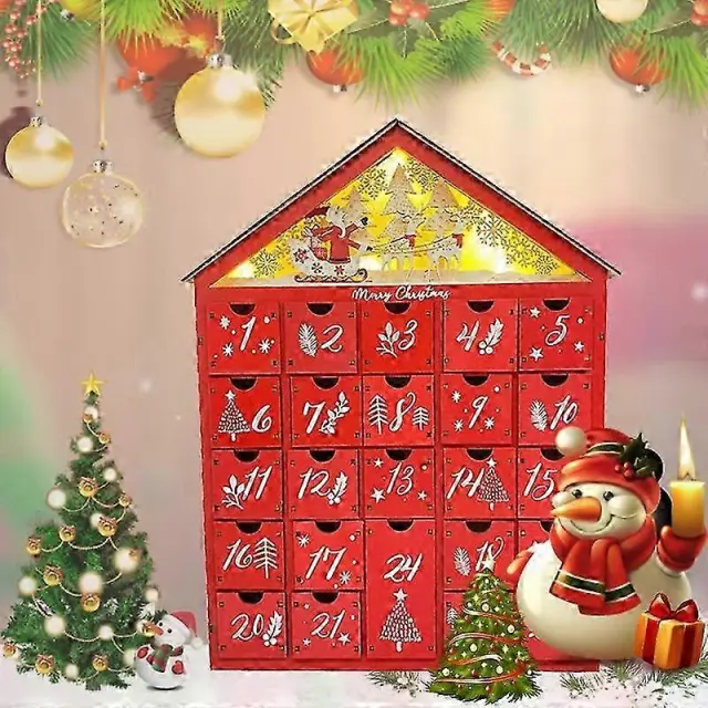 2025 Snowy Village Božično rdeča lesena hišica za adventni koledar z LED lučko 24 predali za shranjevanje Božično odštevanje Organizator sladk