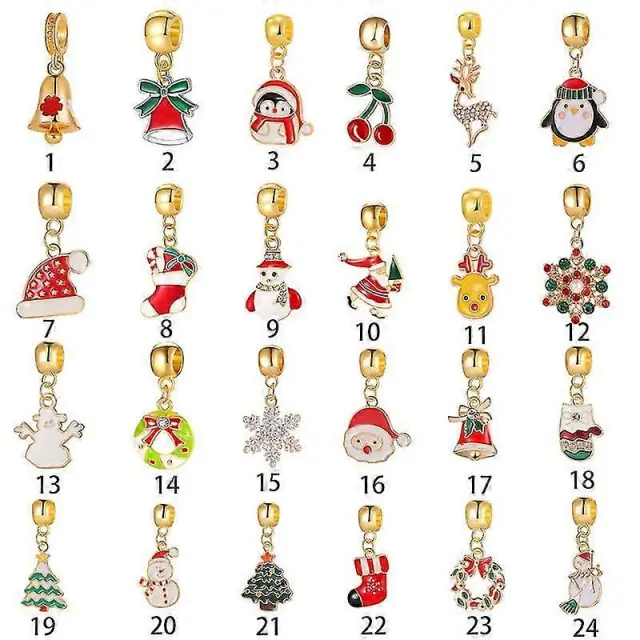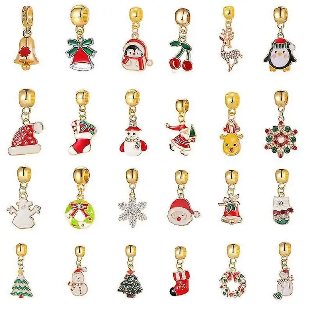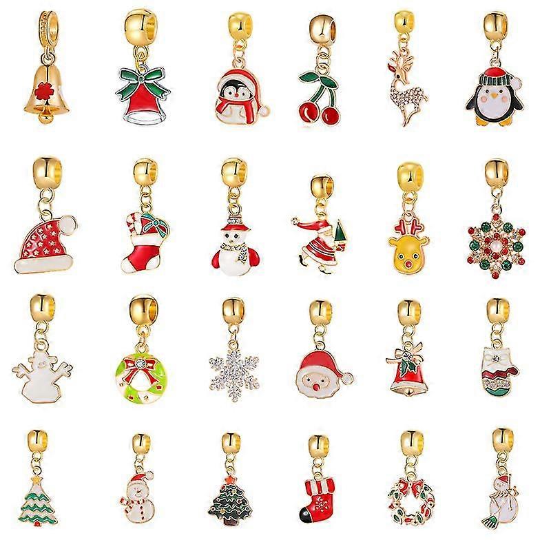2025 Vroč božični obesek iz zlitine zlata z veliko luknjo, naredi sam, zapestnica, ogrlica, slepa škatla, komplet dodatkov Adventni koledarrui1611