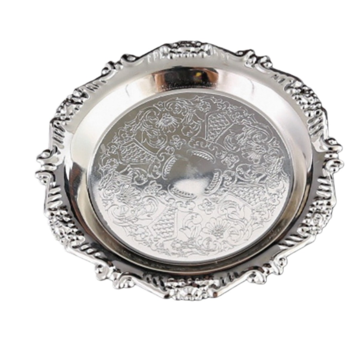 20cm Evropski Reliefni Pladenj iz Nerjavečega Jekla - Dekorativni Krožnik Silver