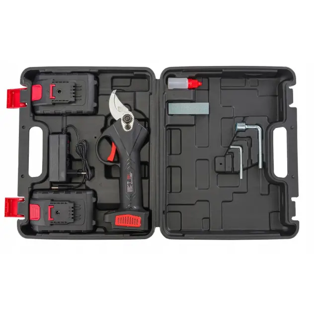 Začnimo z zmogljivostjo. Naše akumulatorske škarje so opremljene z dvema visokokapacitetnima 2Ah baterijama, ki zagotavljata dolgotrajno delovanje brez potrebe po pogostem polnjenju. S tem omogočajo neprekinjeno delo tudi pri zahtevnejših opravilih obrezovanja. Poleg tega je njihova močna rezila omogočajo enostavno obrezovanje vej do 30mm debeline, kar zagotavlja hitro in učinkovito delo brez nepotrebnega napora.