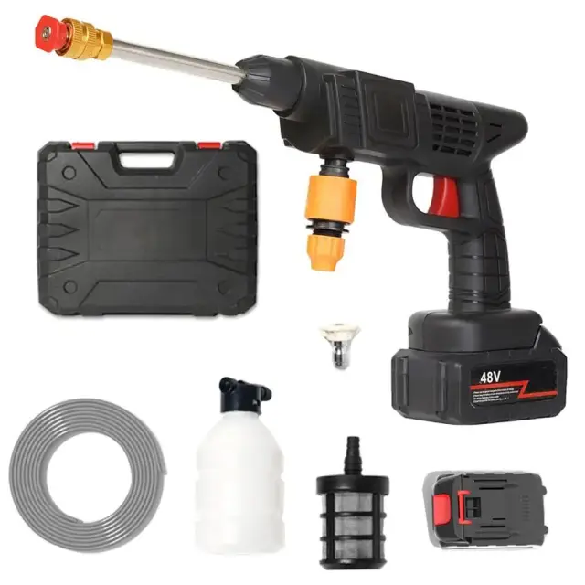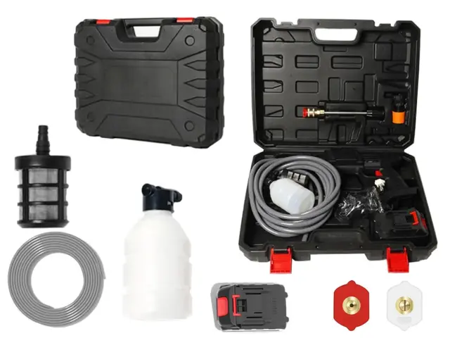 Predstavljamo vam naš vrhunski 21V akumulatorski visokotlačni čistilnik, ki je popolna rešitev za vaše potrebe po čiščenju. Ta inovativni čistilnik vam omogoča, da učinkovito očistite različne površine, kot so avtomobili, terase, fasade, pločniki in še več. Z visokim tlakom in brezžičnim delovanjem je ta čistilnik izjemno priročen in enostaven za uporabo.