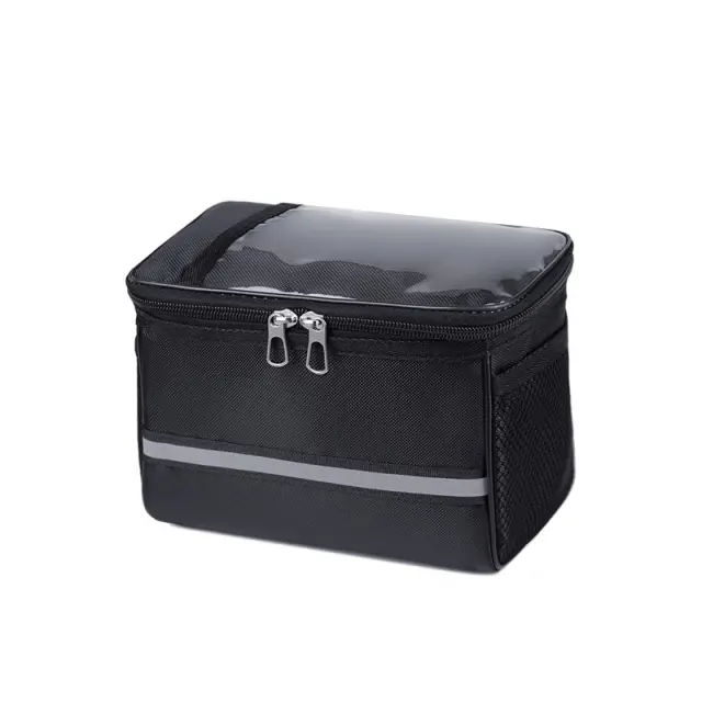 Vodoodporna 600D Oxford: ta kolesarska torba za krmilo, izdelana iz visokokakovostne tkanine 600D Oxford, je zgrajena tako, da prenese rahel dež in brizganje, tako da so vaše stvari med vožnjo varne in suhe.