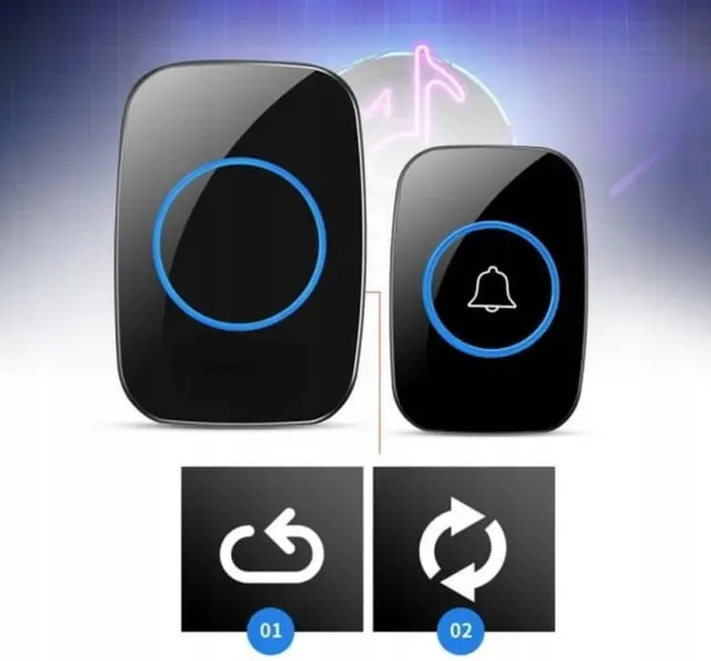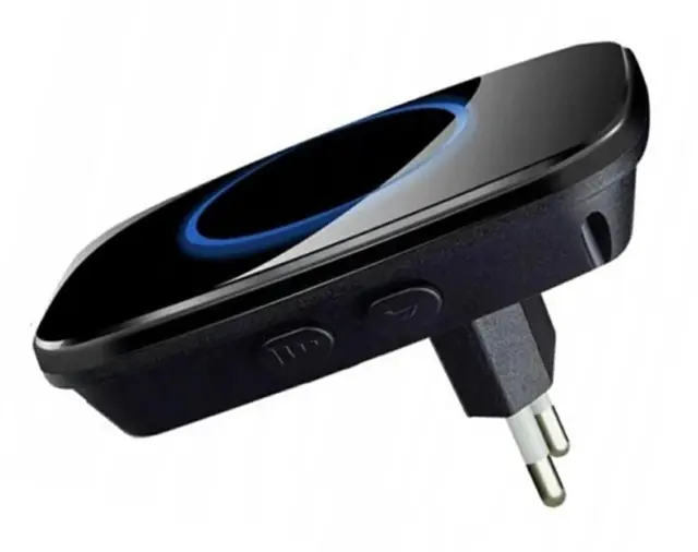 Moderen, brezžični zvonec. Opremljen z oddajnikom (gumbom) s piezoelektričnim stikalom, ki ne potrebuje žičnega napajanja. Domet oddajnika je do 300 m na odprtem prostoru, kar omogoča uporabo tudi kot zvonec na vratih na velikih parcelah. Oddajnik uporablja radijsko komunikacijo za povezavo z zvoncem, ne potrebuje dodatnega ožičenja. Gumb za zvonec je vodoodporen (IP44), zato ga je možno montirati zunaj objekta. Za napajanje samega zvonca je dovolj, da ga priključite na vtičnico.