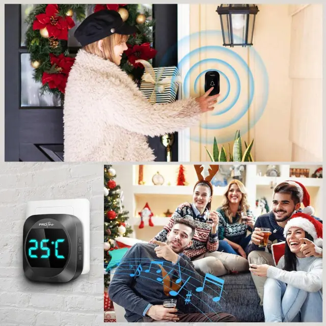 Poleg očitne funkcije zvonca, naprava deluje tudi kot termometer! Sprejemnik zbira meritve sobne temperature in jih prikazuje na LED zaslonu, tako da so vedno dobro vidne.