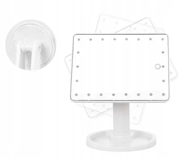 ŠIROK PODNOŽJE – stabilno, široko podnožje ogledala zagotavlja varnost uporabe. Ogledalo se tudi med pogostimi manipulacijami ne bo prevrnilo in se bo popolnoma držalo mizne plošče tudi pri največjem naklonu. Stojalo je opremljeno tudi s praktično vdolbino, v katero lahko shranite majhne predmete.