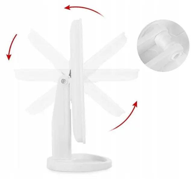 NASTAVITEV NAGIBA – zahvaljujoč možnosti nastavitve naklona ogledala v razponu do 180°, lahko enostavno prilagodite njegov položaj svojim trenutnim potrebam in željam. Za popoln make-up vam ni treba dvigovati ogledala in ga premikati na zgornjo in spodnjo polico – dovolj je le, da prilagodite kot naklona in odlično boste osvetlili vsak del svojega obraza.