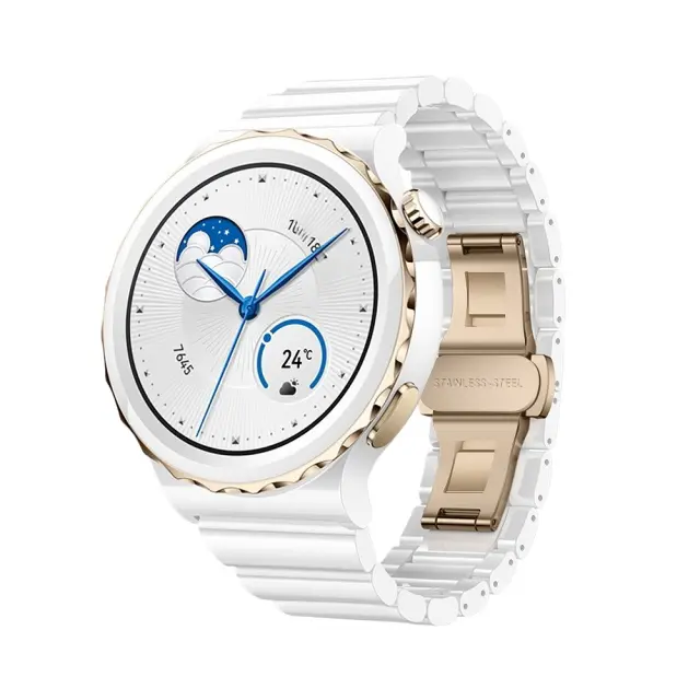 Eleganten keramični dizajn: Povzdignite svojo pametno uro s tem izvrstno izdelanim 22mm keramičnim paškom. Gladki, polirani keramični členi nudijo prefinjen in eleganten videz, ki je popoln za priložnostne in formalne priložnosti. Keramični material ni samo vizualno privlačen, ampak tudi zagotavlja udoben občutek na koži, kar zagotavlja celodnevno nošenje. Ta pašček je združljiv s Huawei GT5, GT5 Pro, GT4, GT3, GT Runner, Watch 4 Pro in serijo Samsung Galaxy Watch, kar izboljšuje njihovo estetsko privlačnost s pridihom razkošja. Zapleten dizajn in vrhunski materiali ga naredijo izstopajoč dodatek za vašo pametno uro.