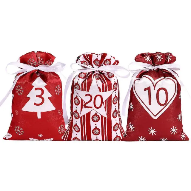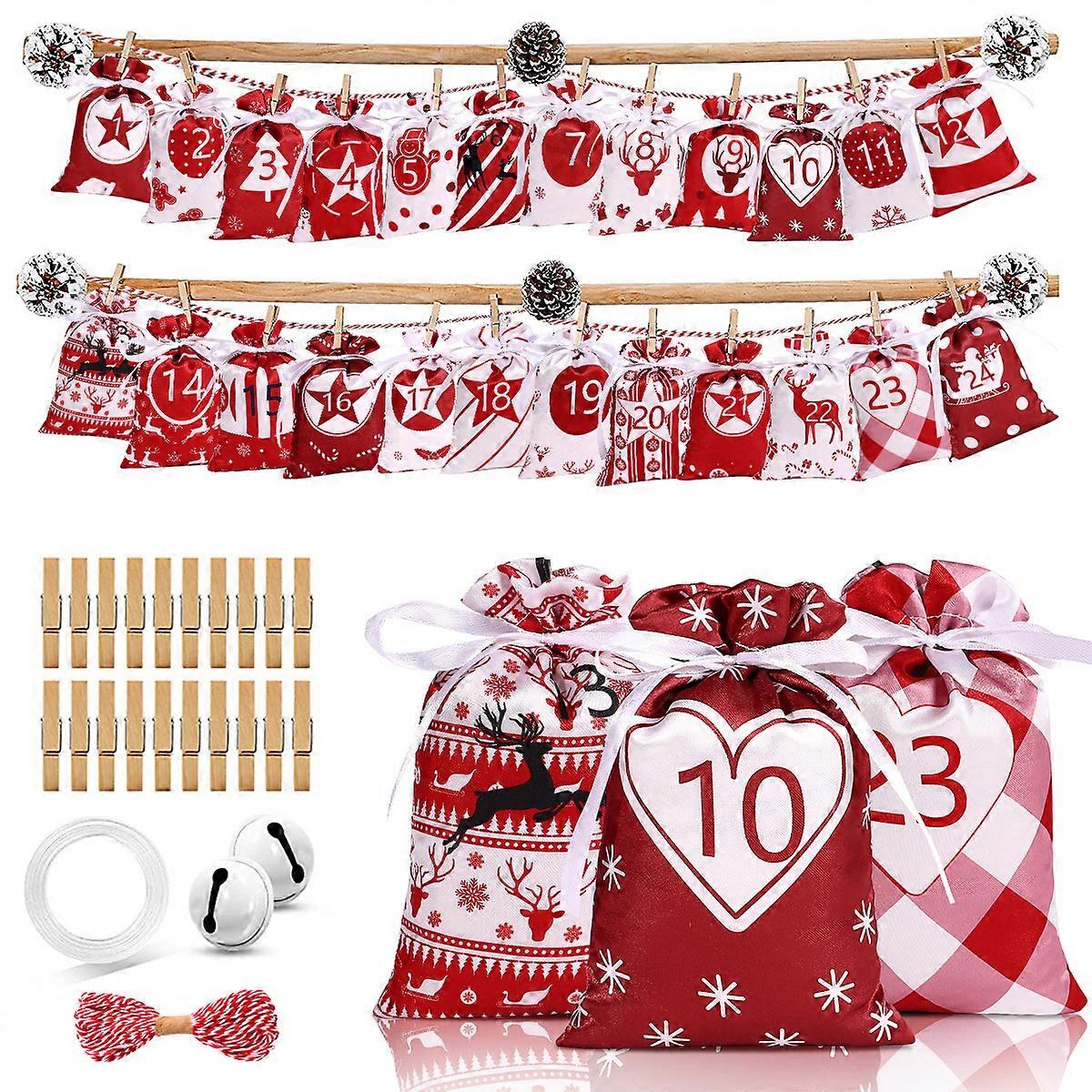 24 adventnih koledarjev za polnjenje - vrečke iz blaga, vrečke za božična darila z nalepkami s številkami + mini lesene sponke in konoplja iz jut