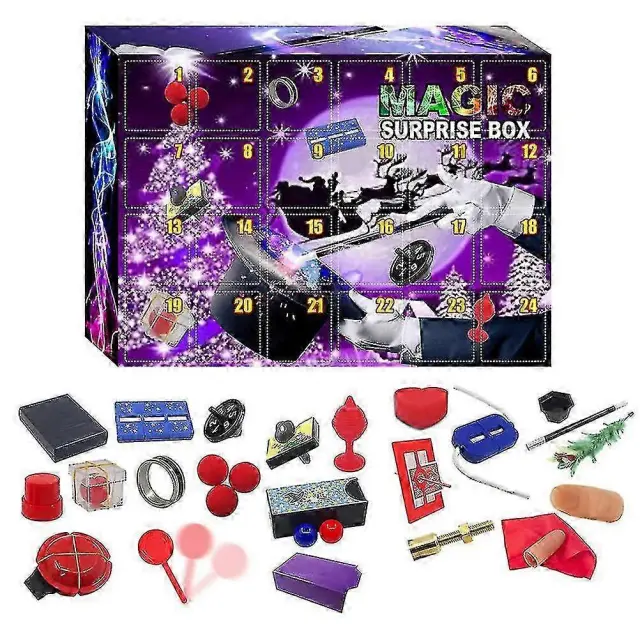 24 Days Magic Tricks Adventni koledar za otroke, božična odštevalna škatla presenečenja s 24 kosi čarobnih igrač, darila za fante in dekleta