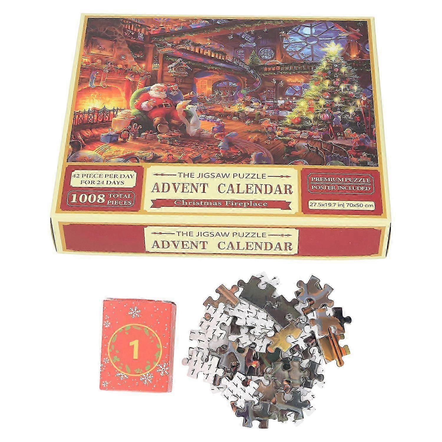24 Days Xmas Puzzle Odštevalni koledar, 1008-delni družinski izziv Pisana božična praznična sestavljanka P