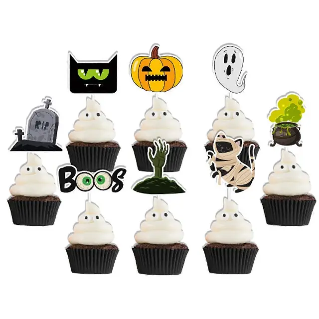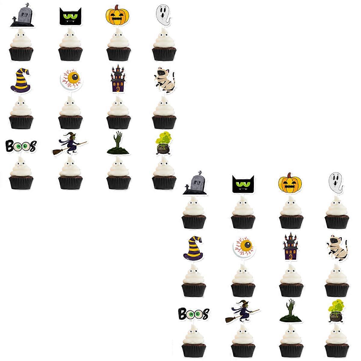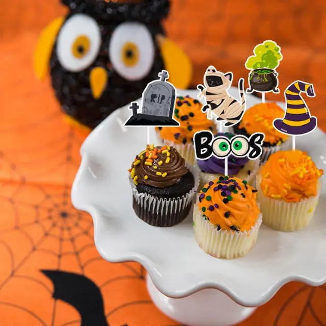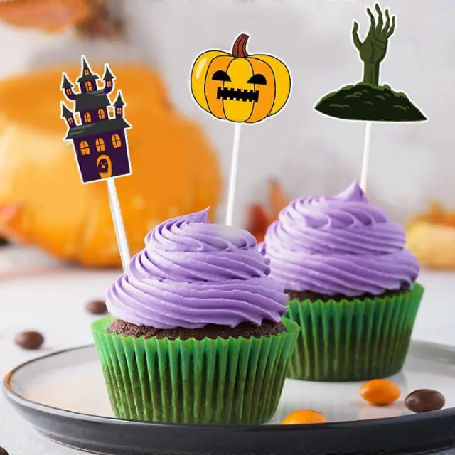 24-delni dodatki za zabavo za noč čarovnic, prevleke za torte, dekoracija za torto Haunted House z bučnim duhom in lobanjo