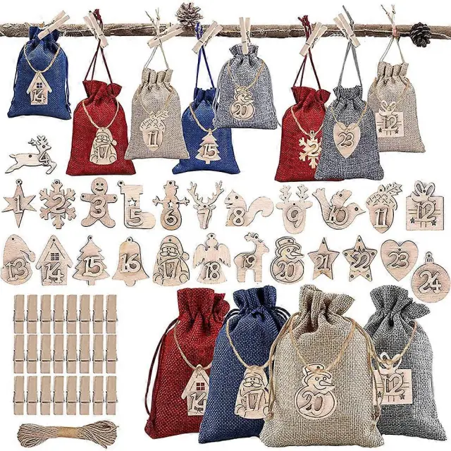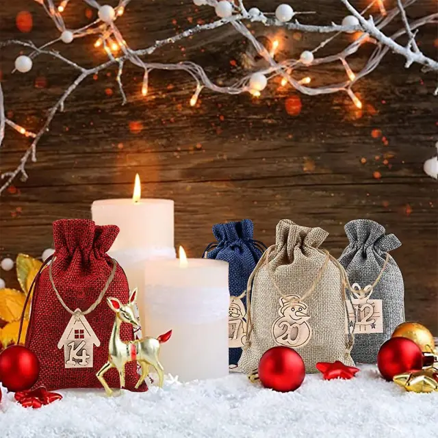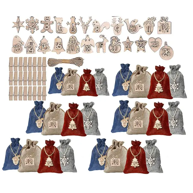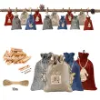 24 DIY vrečk za božični adventni koledar s sponkami in vrvjo iz konoplje