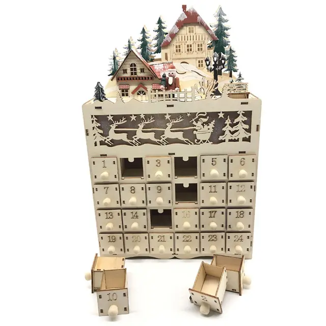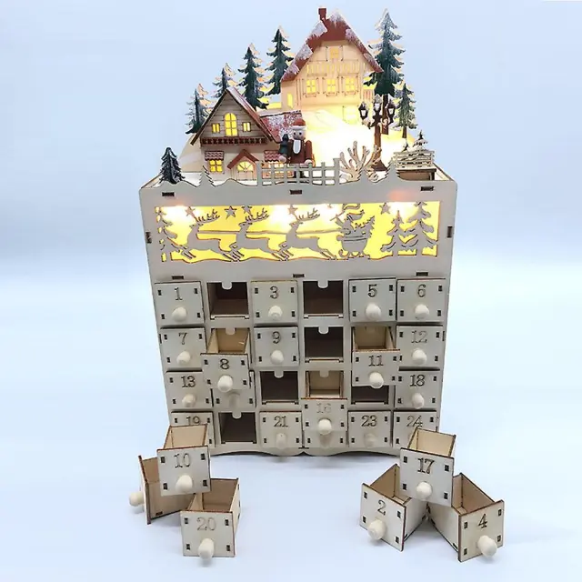 24-dnevna lesena LED lučka, božični odštevalnik, okras, eleganten namizni obrtni dekor za domačo spalnico