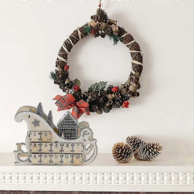 24-dnevni adventni koledar 2025, odštevanje do božiča. Lesen adventni koledar s 24 predali za shranjevanje, 100% lesena konstrukcija