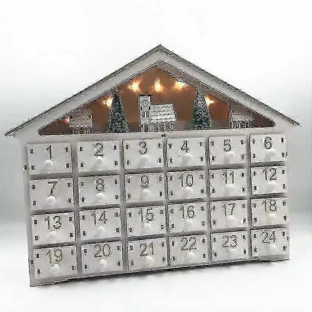 24-dnevni bel lesen predal za shranjevanje božičnega adventnega koledarja z LED diodami