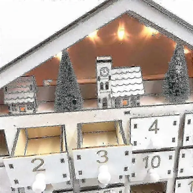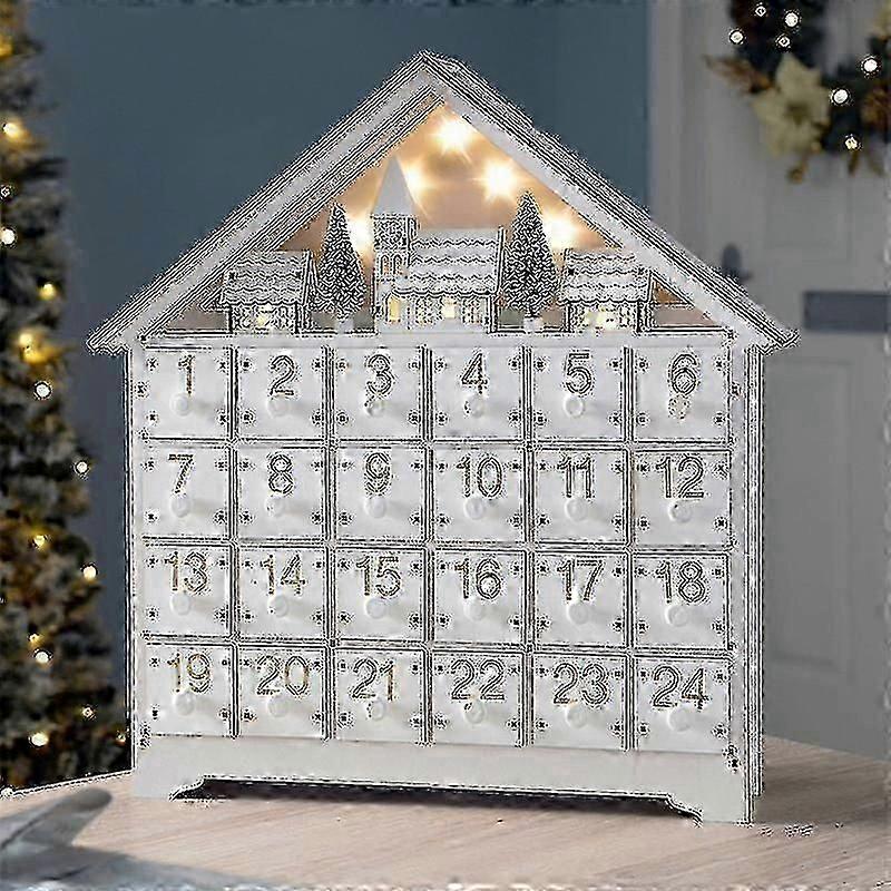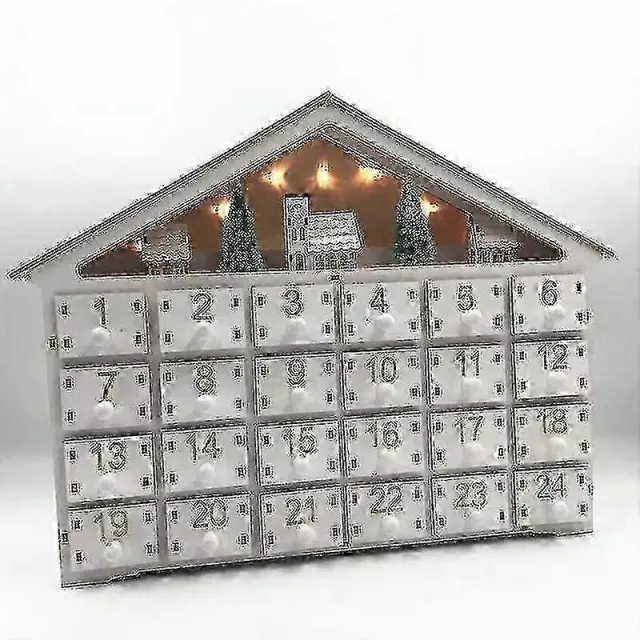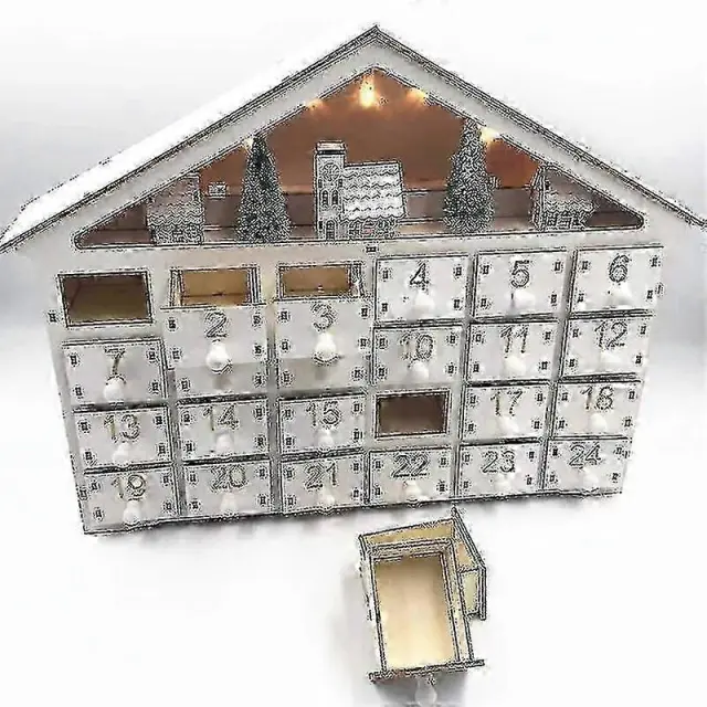 24-dnevni bel lesen predal za shranjevanje božičnega adventnega koledarja z LED diodami