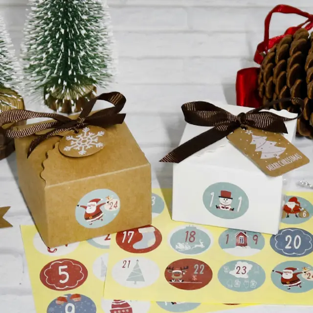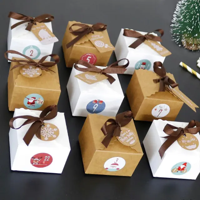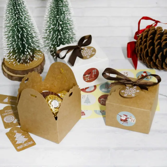24 Kompletov Božič 1-24 Adventni koledar Škatla za bonbone iz kraft papirja z oznakami Nalepke Trak Dekoracija za shranjevanje daril
