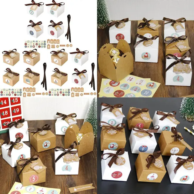 24 Kompletov Božič 1-24 Adventni koledar Škatla za bonbone iz kraft papirja z oznakami Nalepke Trak Dekor za shranjevanje daril