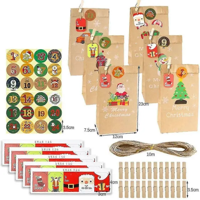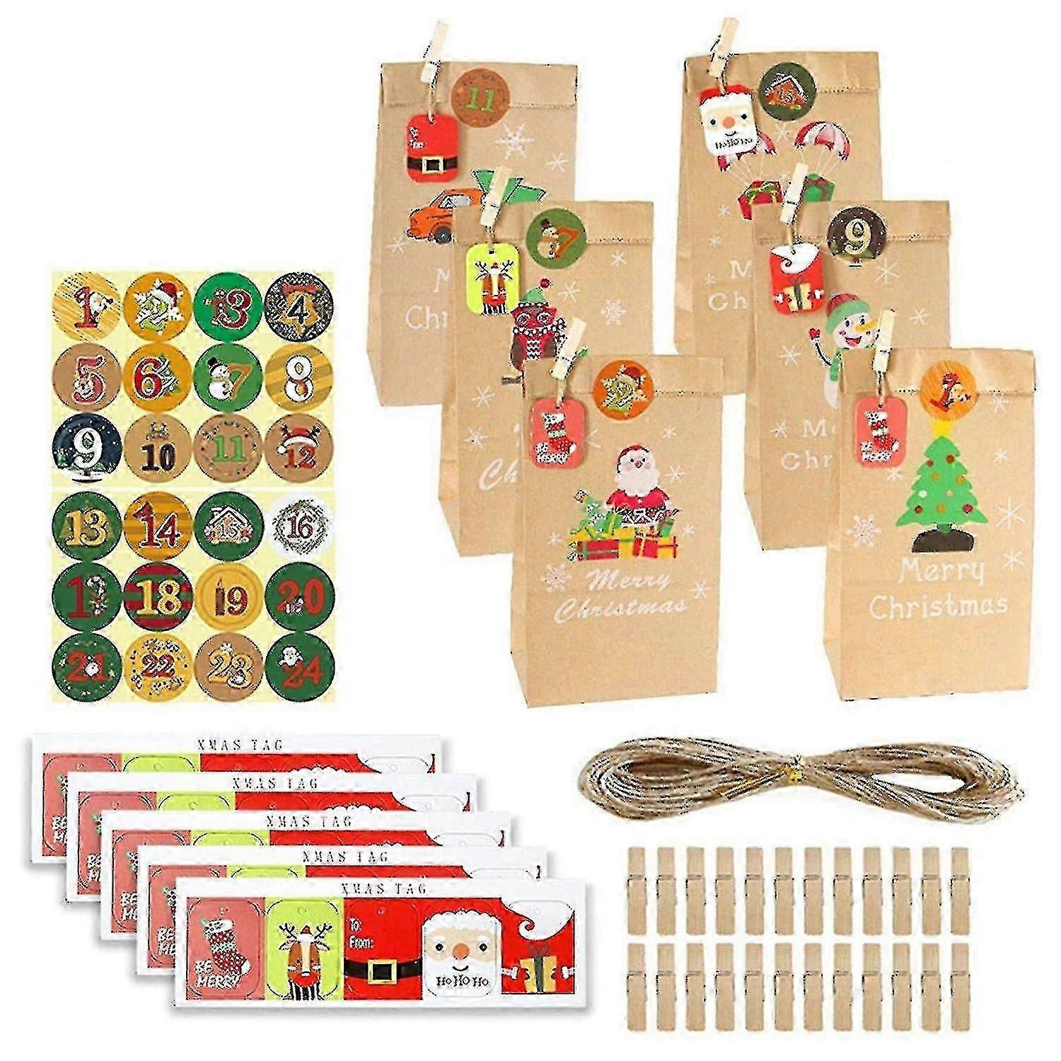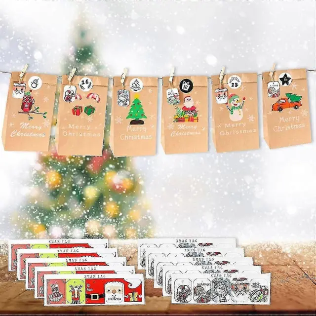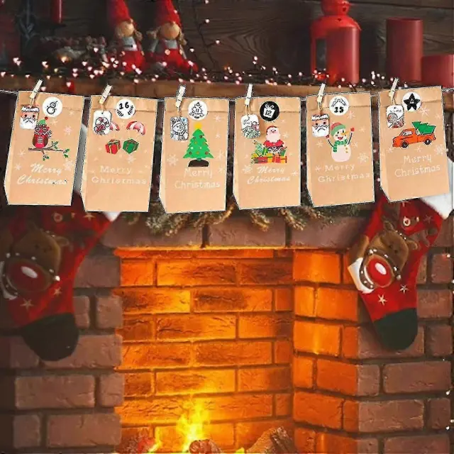 24 kompletov vrečk za božični adventni koledar 24-dnevne torbe za koledar Kraft Torbe za božične zabave za božični december