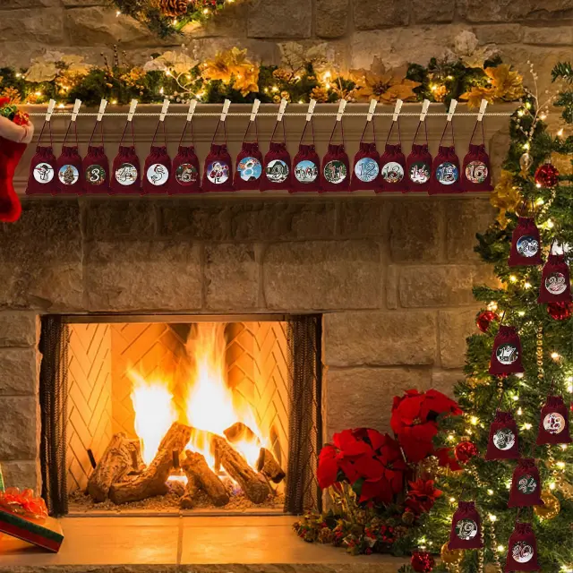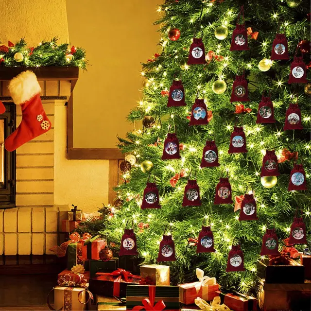 24 KOSOV Božična vrečka z vrvico, srečna številka, darilna vrečka, božična vrečka, torbica za božični adventni koledar