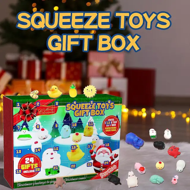 24 kosov, božični adventni koledar, 2023 božične gumijaste račke igrače za kopanje, božična igračka za slepe škatle,--