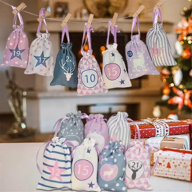 24 KOSOV božičnih vrečk za adventni koledar, božične darilne vrečke za odštevanje B
