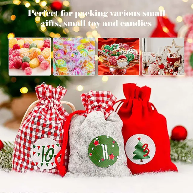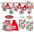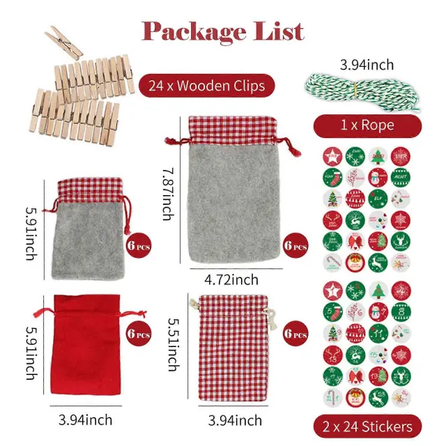 24 KOSOV vrečk za božični adventni koledar s sponkami, nalepkami in vrvjo