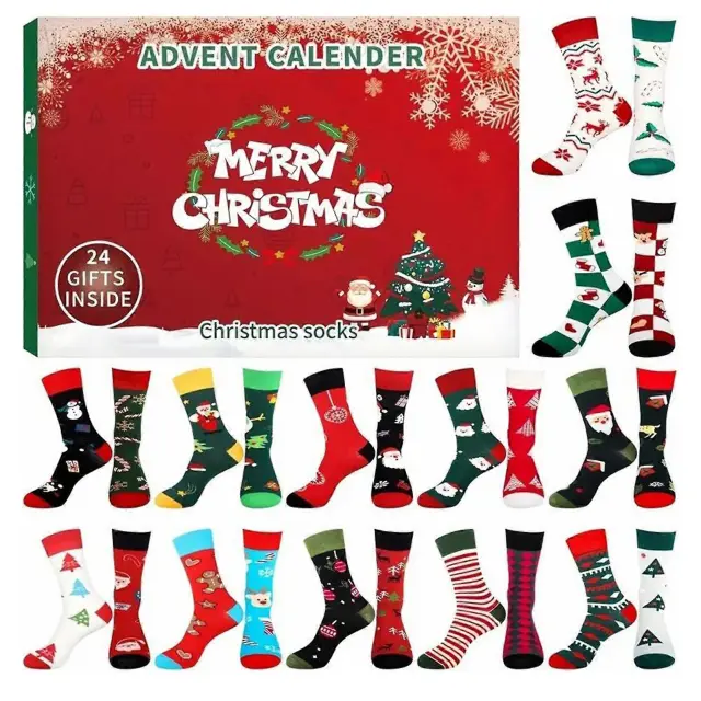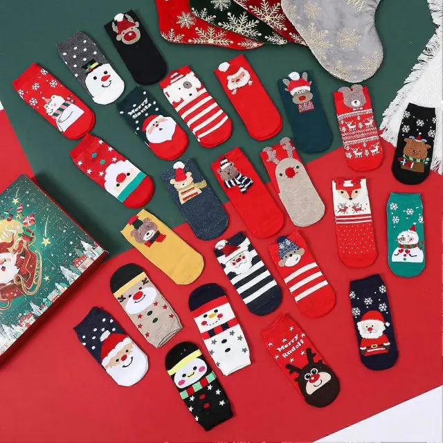 24 parov božičnih nogavic, adventni koledar 2025, zabavne, pisane praznične nogavice za moške in ženske, popolne za družinska srečanja in zimsk