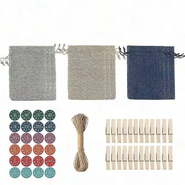 24 polnilnih vrečk iz blaga za adventni koledar z 1-24 nalepkami za moške, ženske, otroke - božične darilne vrečke