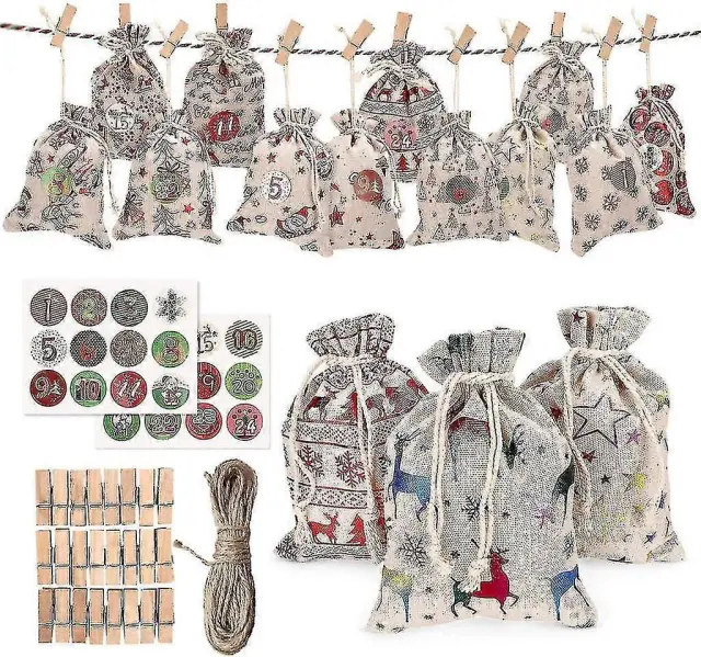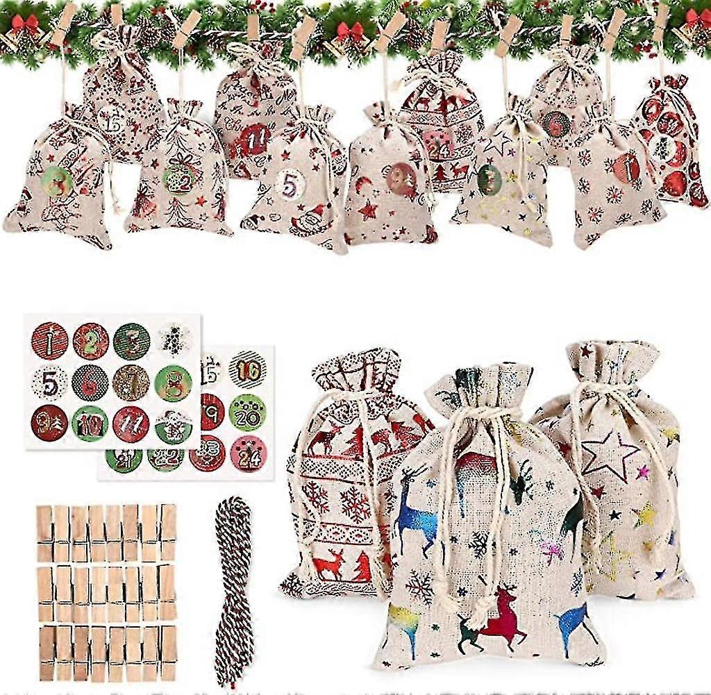24 vrečk za božične koledarje Viseči adventni koledar Girlanda Darilna vrečka za sladkarije Diy Odštevanje