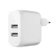 Ta dvojni USB Boost Charge stenski polnilnik Belkin lahko polni dve napravi hkrati. Hitro napolnite dve napravi hkrati. Opremljen z 2 vhodoma USB-A s skupno močjo 24 W (4,8 A). Vsaka vrata imajo 12 W, kar omogoča hitro polnjenje vsake povezane naprave.