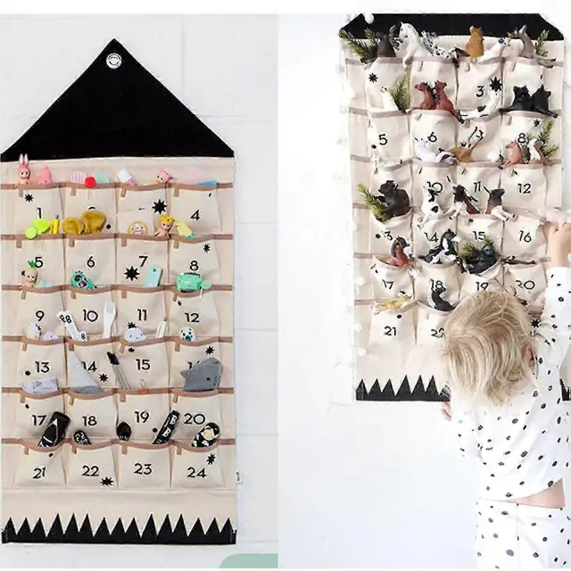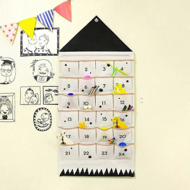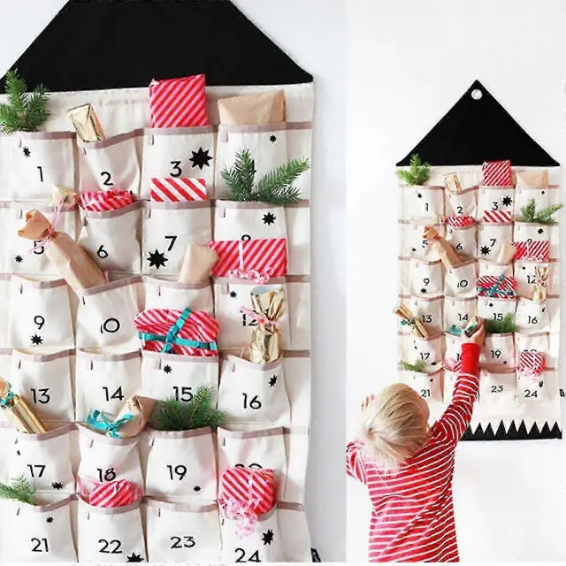 24-žepni adventni koledar iz blaga z vrečkami na vrvico za božične okraske in okrasje za zabave
