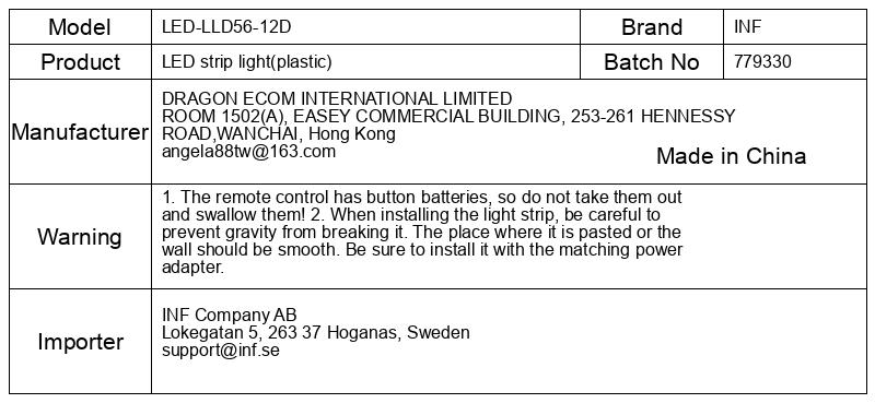 1. Daljinski upravljalnik ima gumbaste baterije, zato jih ne vzemite ven in ne pogoltnite! 2. Ko nameščate svetlobni trak, pazite, da ga gravitacija ne zlomi. Mesto nalepitve ali stena mora biti gladka. Pazite, da ga namestite z ustreznim napajalnikom.