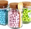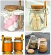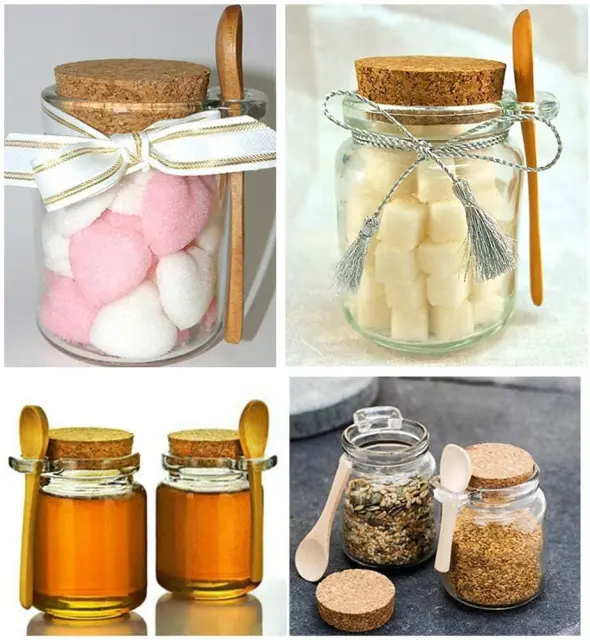 Debel prozoren steklen kozarec za shranjevanje s plutovinastim zamaškom in leseno žlico, popoln za shranjevanje hrane, kopeli, soli, mila, medu, oreščkov in zelišč.Material: steklo. Kapaciteta: 250 ml. Dimenzije: 105 mm x 75 mm (celotna višina x premer). Pakiranje: 1 enota. Priložena je žlička in zamašek, zaradi česar je bolj priročna za uporabo; ima dobro tesnjenje, zato vam ni treba skrbeti, da bi se izdelek razlil. Možnost ponovne uporabe in recikliranja; izdelate lahko tudi elegantna darila za poroke, božič ali druge praznike. Primerna za sol, začimbe, začimbe, sojino omako, kis, oreščke, med, maske v prahu, materiale za obrt, zbirateljske predmete in več.