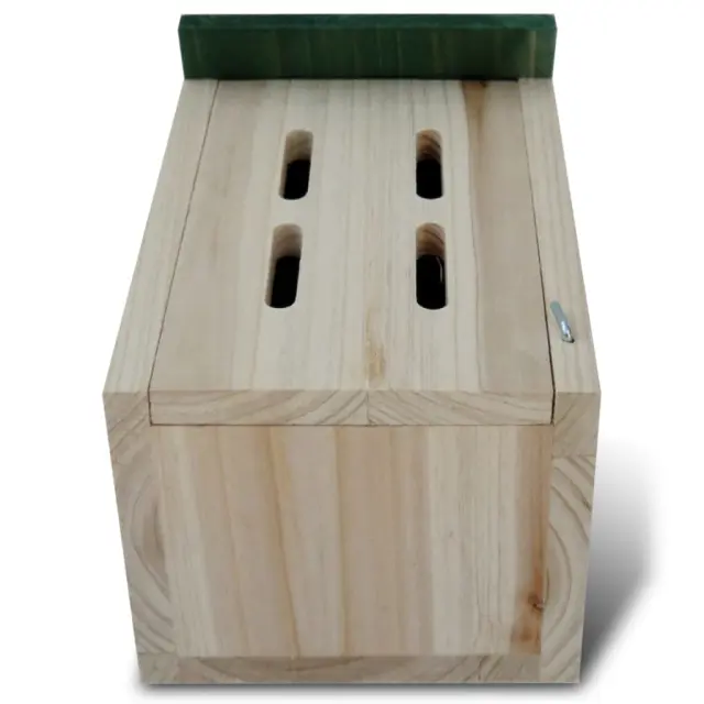 This lovely wooden butterfly house set, constructed from solid wood, is designed for your colourful friends! The housing has a natural wood colour and a green roof, and it will be a nice ornament as well as an excellent nesting spot for butterflies. Slots in the butterfly houses keep birds out while offering butterflies shelter from the wind and the weather. Each butterfly house has a door for cleaning, with which you can take better care of your winged friends. Equipped with a metal hanger, they are ready to be mounted in your garden. Delivery includes 8 butterfly houses.Material: Trden lesCelotna velikost: 14 x 15 x 22 cm (D x Š x V)Delivery includes 8 butterfly houses 276007