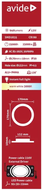 281192 Vgradna stropna svetilka LED Okrogla 12W WW 940 lm
