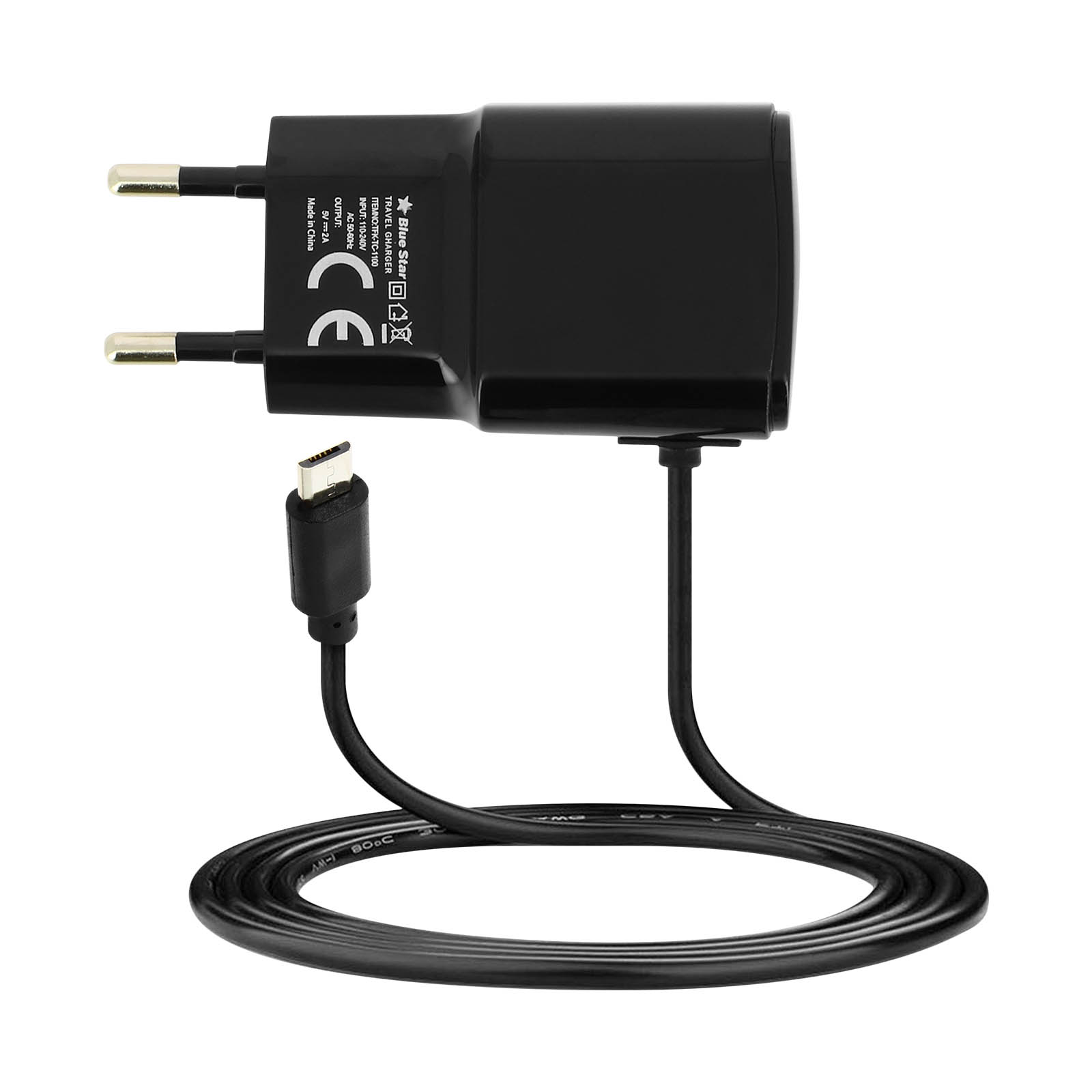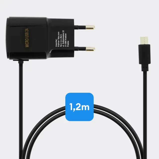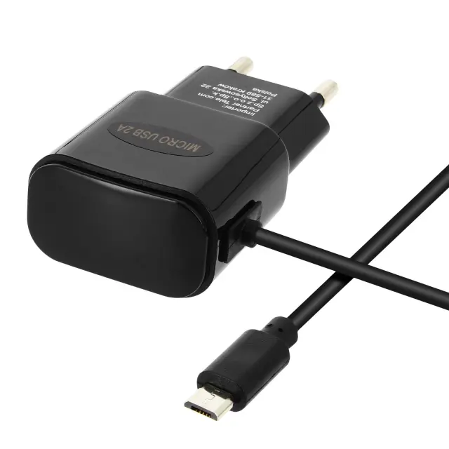 2A omrežni polnilec z vgrajenim kablom micro-USB. Napolnite svoj mobilni telefon dvakrat hitreje kot z običajnim polnilnikom. Avtomatski in pregrevalni rezalniki. Dolžina kabla 120 cm.