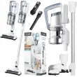 Ta vrhunski sesalnik združuje močan motor, napredno brezžično tehnologijo in izjemno prilagodljivost za temeljito čiščenje vašega bivalnega prostora. Opremljen s svetlo LED osvetlitvijo in zmogljivo litij-ionsko baterijo, vam omogoča dolgotrajno, učinkovito čiščenje brez omejitev kabla. Z enostavnim preklopom med pokončnim in ročnim sesalnikom je ta naprava nepogrešljiva za vse vrste tal, preprog in težko dostopnih mest.