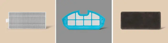 Set vsebuje: 3x HEPA 11 filter, rezervoar 2 v 1, 2x krpo za brisanje, daljinski upravljalnik, 2 para stranskih krtač, čistilno krtačo, priklopno postajo, napajalnik